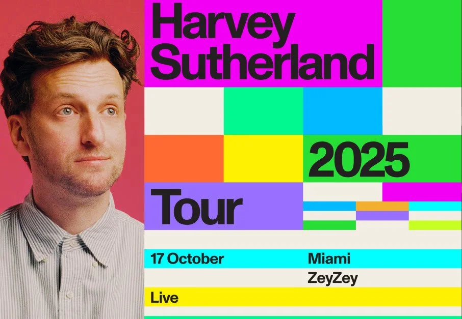 In the green room at ZeyZey in Miami’s Little Haiti, Harvey Sutherland sat with his arm slung across the back of the couch—casual, calm, completely at ease. I had yet to see him on stage, but it was already clear from having been in his presence: he was in his element.